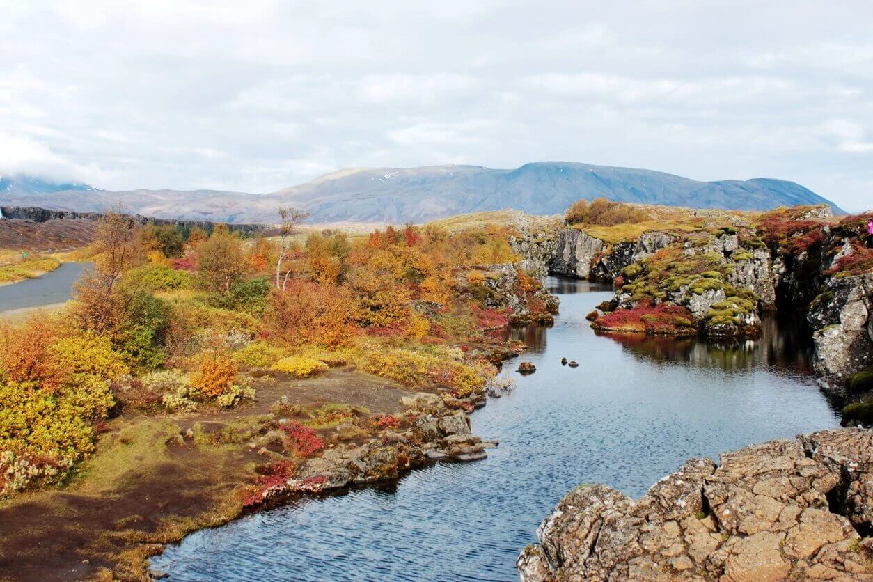 Le plus beau paysage d’Islande en automne est sans aucun doute le parc national de Thingvellir. Situé au bord du lac Thingvallavatn, ce paysage unique offre une vue impressionnante sur les montagnes et les falaises volcaniques qui entourent le lac. Les couleurs des feuilles des arbres et des buissons, qui changent avec le temps, ajoutent une touche d’automne à ce paysage spectaculaire. Pendant votre visite, vous pourrez également admirer des cascades et des chutes d’eau sauvages, ainsi que des geysers bouillonnants et des sources thermales.