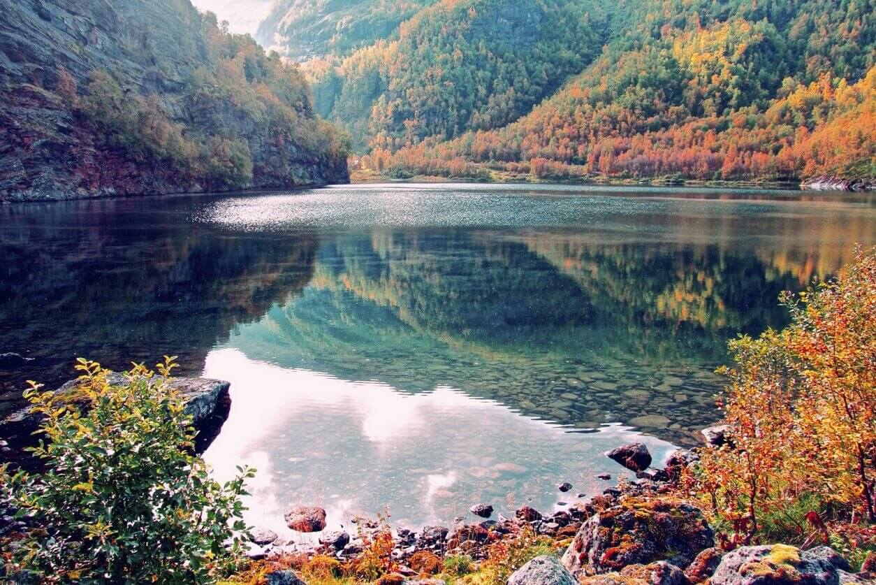 Le parc national de Hardangervidda est à couper le souffle en automne. Les collines sont couvertes de mousses, de lichens et de couleurs dorées, et les lacs sont argentés de givre.