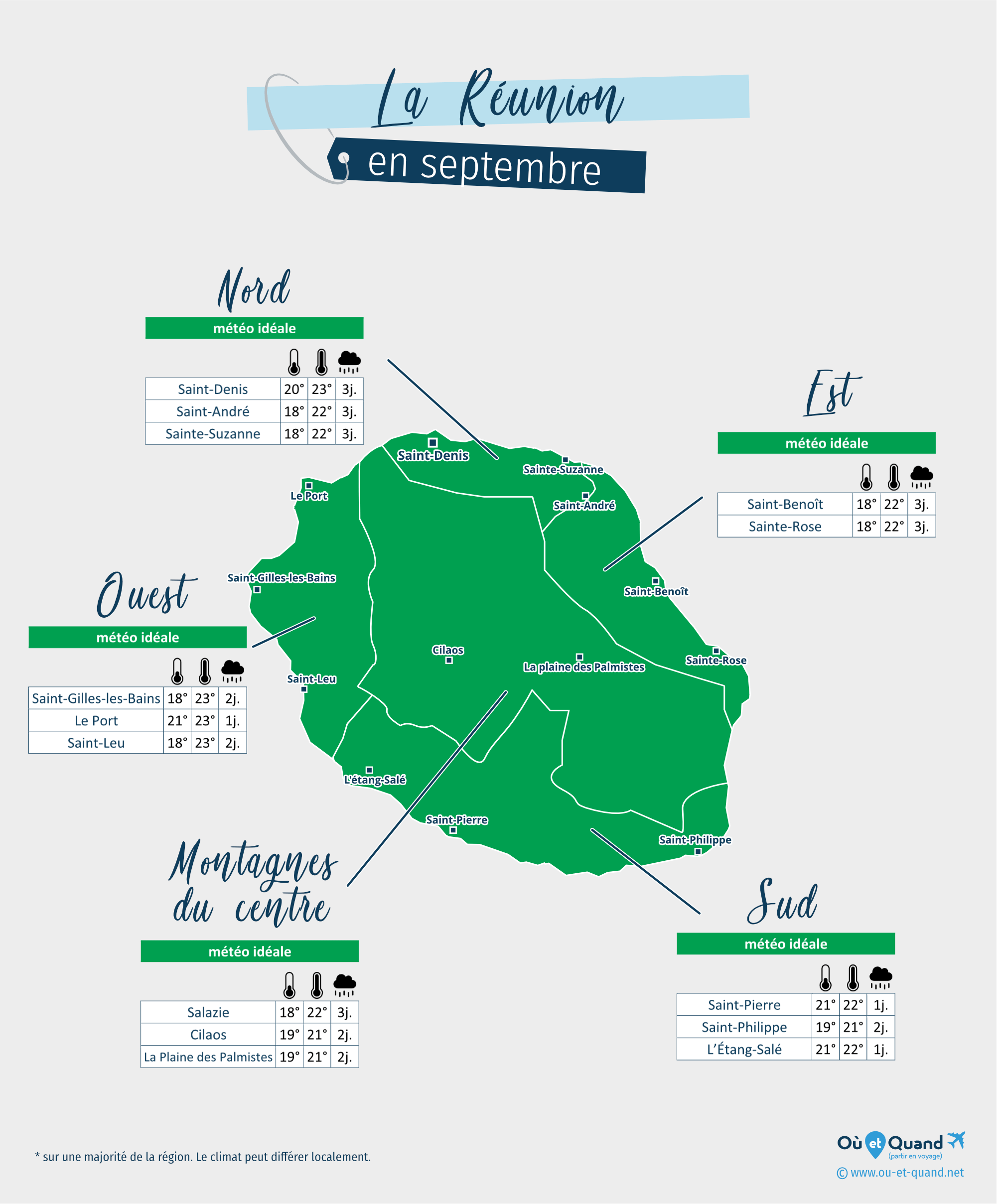 Principales villes de la Réunion en septembre