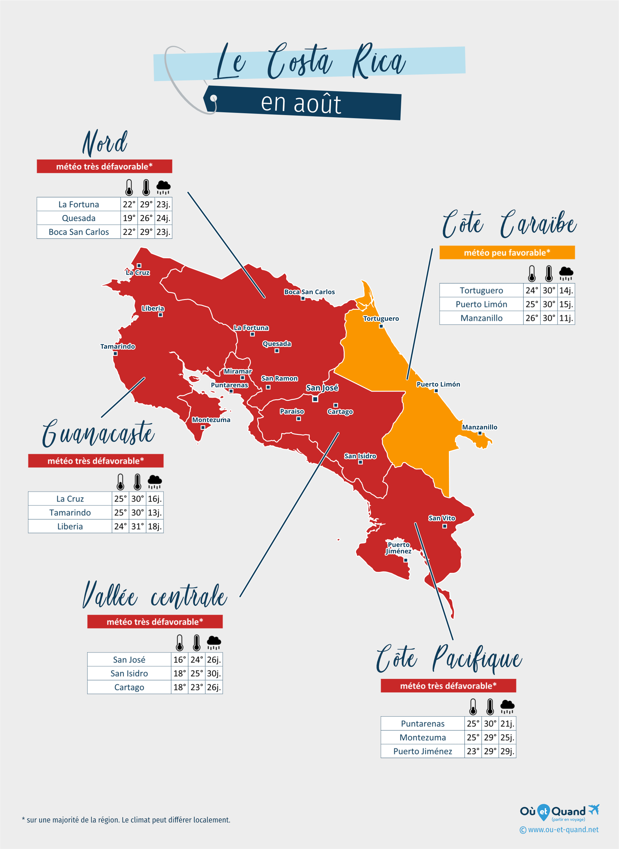 Avec une météo très défavorable, le mois d'août n'est pas un mois conseillé pour partir là-bas au Costa Rica.