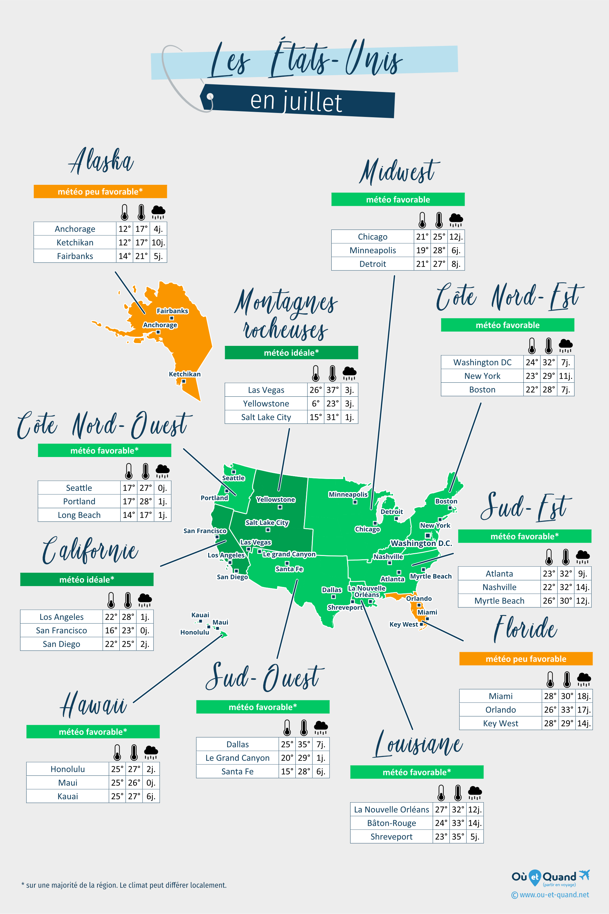 Quel temps fait-il aux États-Unis en juillet ? Découvrez la météo et les températures prévues en juillet 2026