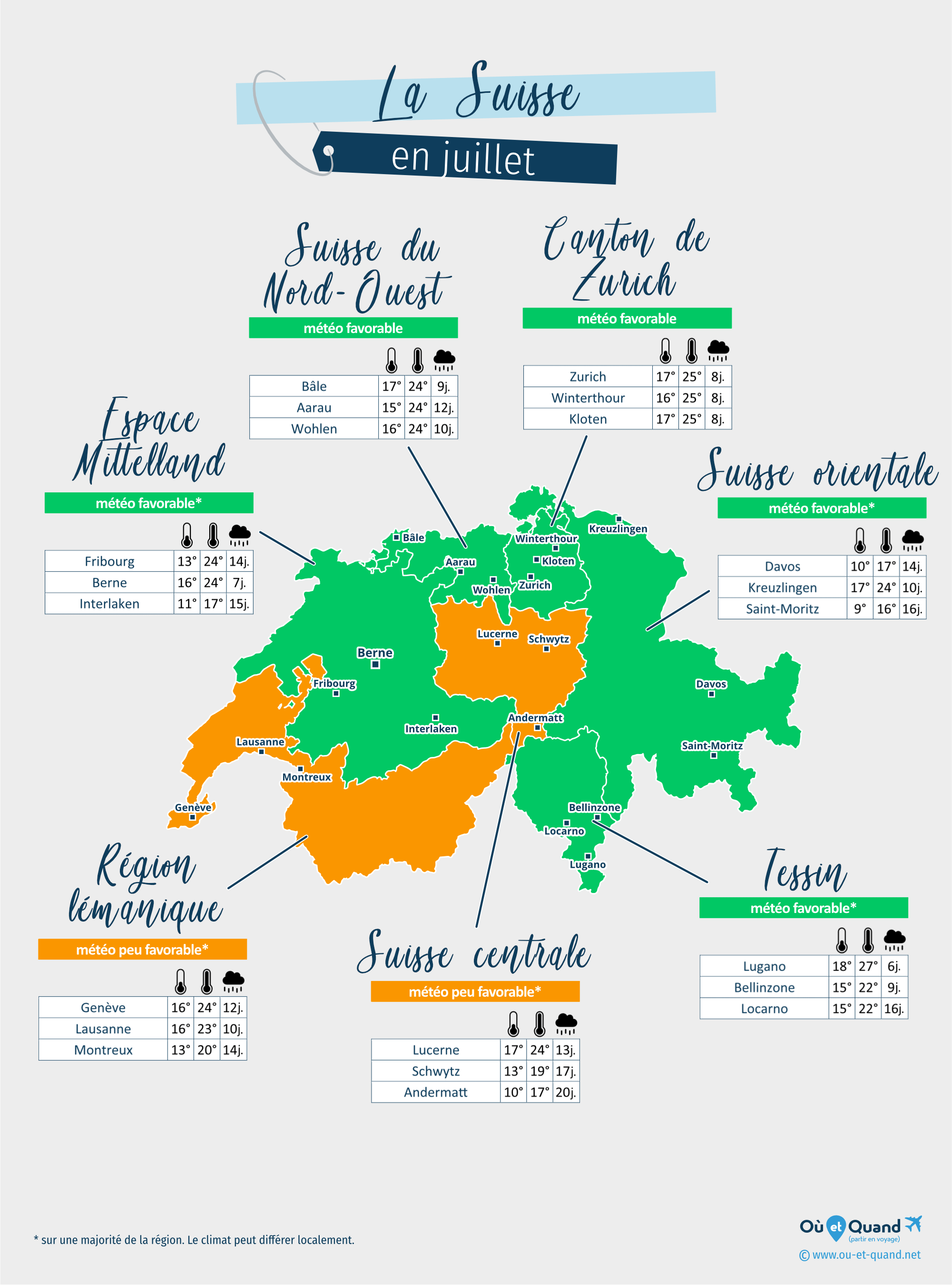 Avec une météo favorable, juillet est un bon mois pour se rendre là-bas en Suisse.