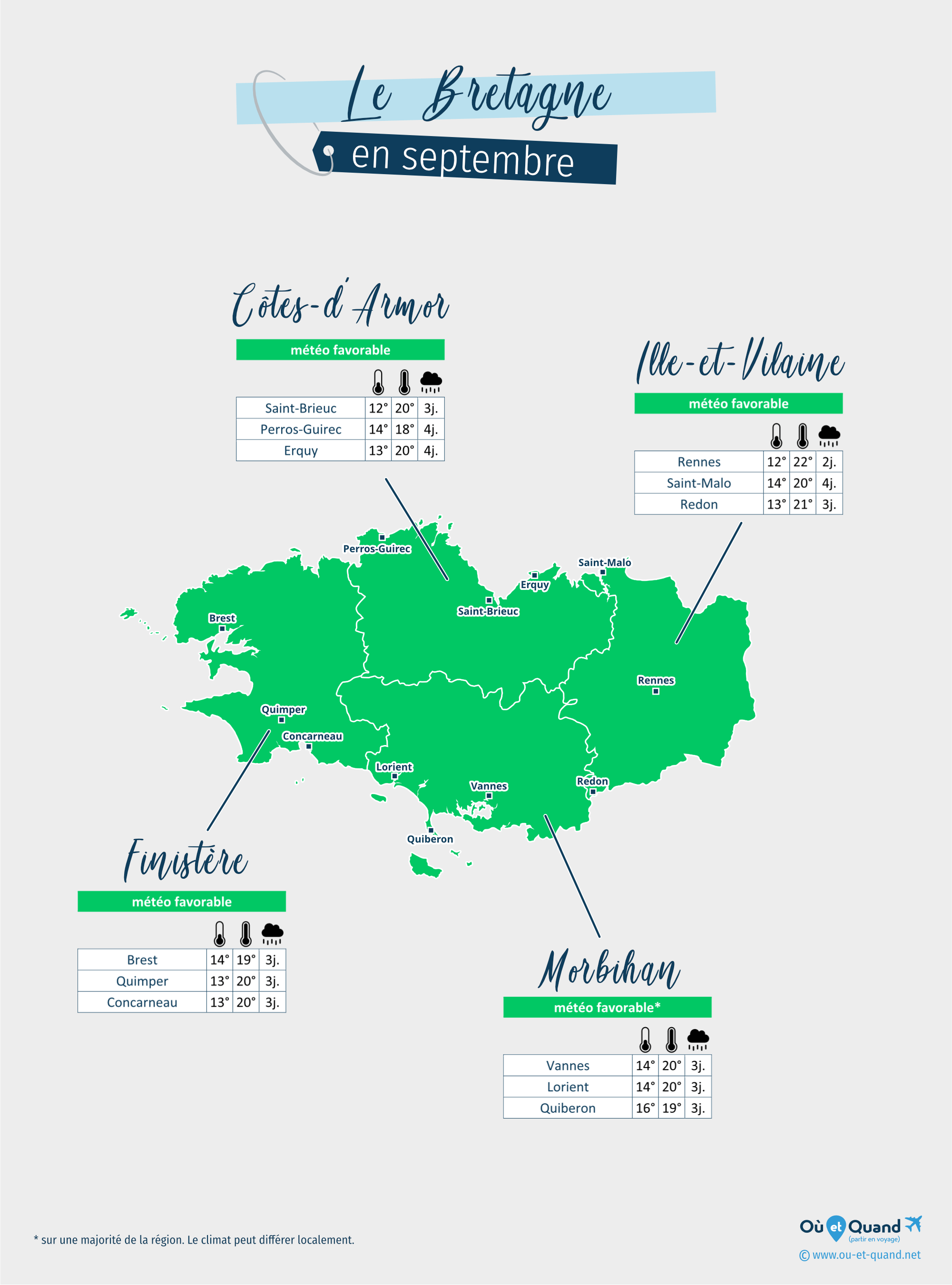 Principales villes de la Bretagne en septembre