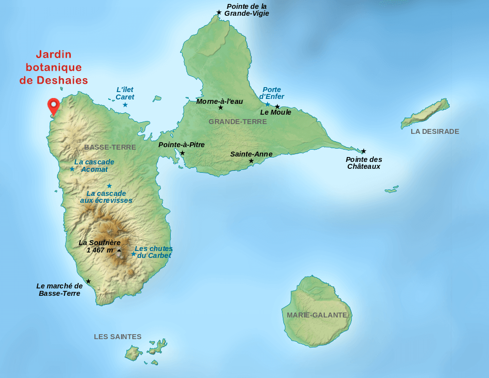 Comme son nom l’indique, le jardin botanique est situé sur la commune de Deshaies qui se trouve sur l’île de Basse-Terre.