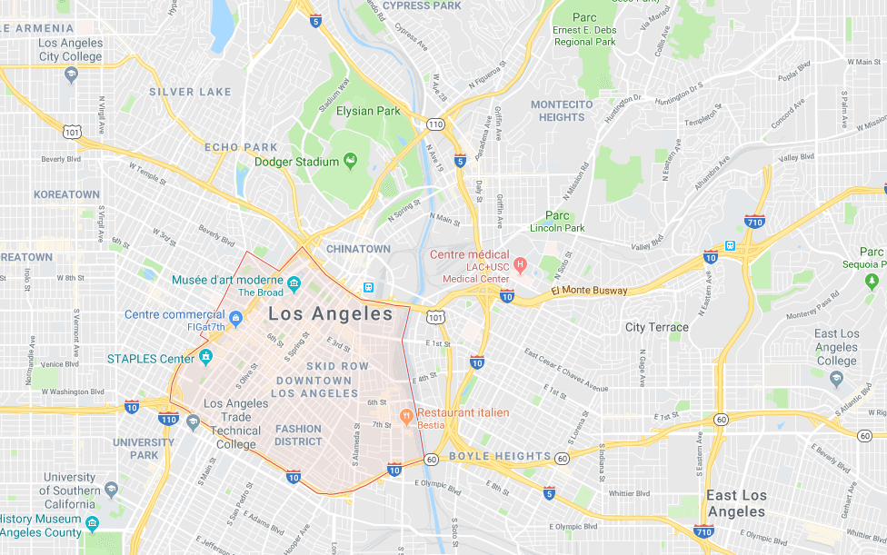 Quartier d’affaires en plein cœur de Los Angeles, Downtown abrite le gouvernement du comté de Los Angeles, de nombreuses centres artistiques et sportifs. C’est un enchevêtrement de routes, de gratte-ciel, d’œuvres d’art en plein air, de centres de congrès et de nombreux cinémas. Bordé par la rivière de Los Angeles, le quartier accueille aussi un magnifique marché aux fleurs et dispose d’un réseau de transport de commun hors du commun ! Vous êtes certains de pouvoir aller partout depuis Downtown.