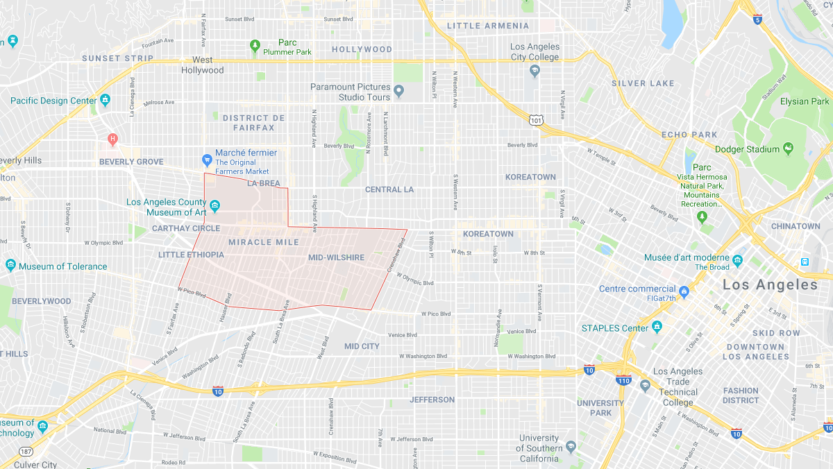 Situé entre Hollywood et Downtown, Mid-Wilshire, surnommé aussi Midtown, est un quartier qui se compose d’une myriade de petites entités où habitent différentes communautés. On y trouve de nombreux musées parmi lesquels le LACMA (Los Angeles County Museum of Art), salles de concert et de beaucoup d’habitations ayant reçu le statut de monument historique. C’est aussi à Mid-Wiltshire que l’on trouve en Californie la plus forte densité de clubs et de commerces ouverts 24/24.