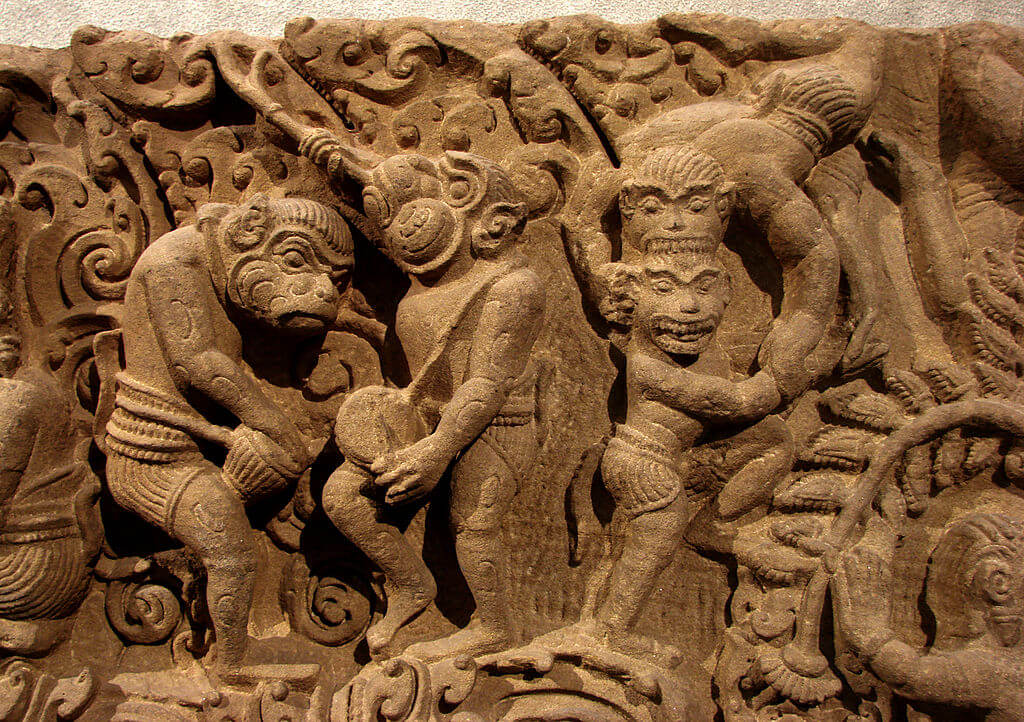 « Il était une fois, il y a de cela très longtemps, un géant devenu roi, qui lors d’une altercation avec un ennemi manqua son coup. Au lieu de toucher son adversaire, son gourdin alla se ficher dans le ruisseau Dambang et suivant son cours, se perdit dans une région éloignée qui fut nommée Battambang. »