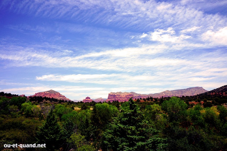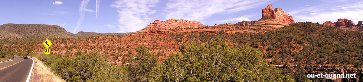 Malheureusement pour moi, quand j’ai voulu l’emprunter, la route était fermée au bout d’une trentaine de kilomètres à cause d’un incendie de forêt. J’ai dû rebrousser chemin et emprunter la beaucoup moins jolie interstate pour me rendre à Sedona.