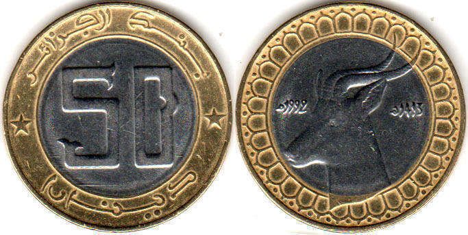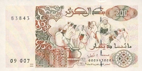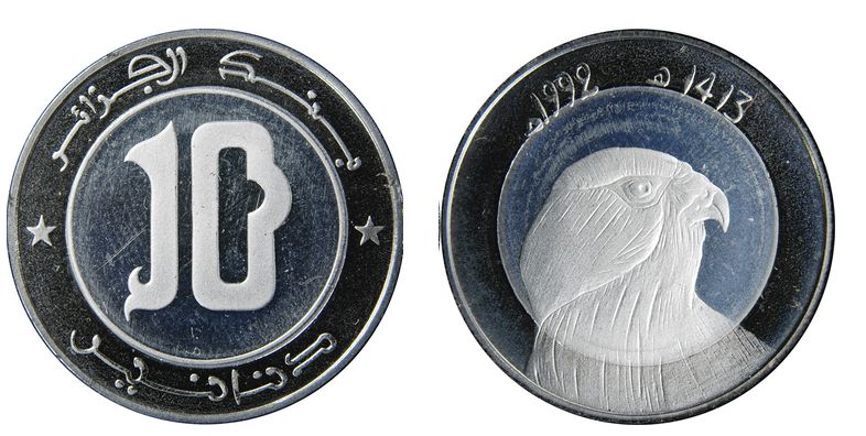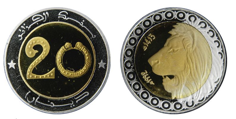 Voici la liste et le visuel des principaux billets (200 DZD, 500 DZD, 1000 DZD) et pièces (5 DZD, 10 DZD, 20 DZD, 50 DZD, 100 DZD, 200 DZD) en Dinar algérien actuellement en circulation à Alger en Algérie.