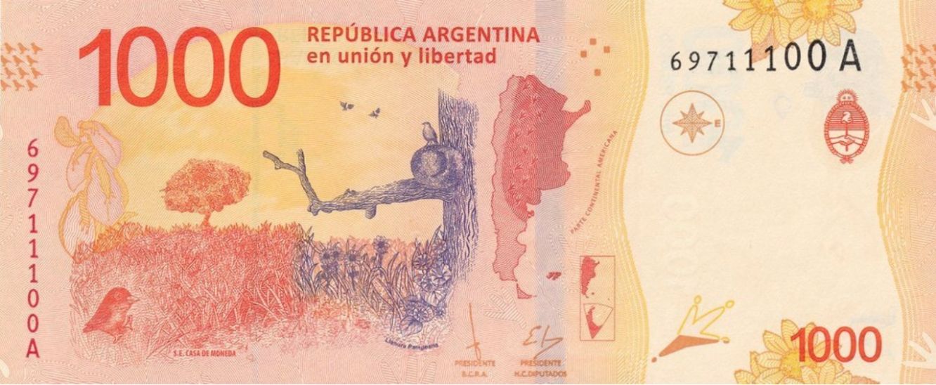 Le peso argentin, de symbole $, et de code ARS selon l'ISO 4217, est la monnaie officielle de l'Argentine. Pour différencier le peso du dollar américain, on utilise le symbole $AR. À noter aussi que 1 peso argentin est subdivisé en 100 centavos, c'est pourquoi, il existe des pièces de 5 10, 25, 50 centavos, mais aussi de 1 $AR et de 2 $AR. Les billets en circulation sont les coupures de 10 $AR, 20 $AR, 50 $AR, 100 $AR, 200 $AR, 500 $AR et 1 000 $AR.