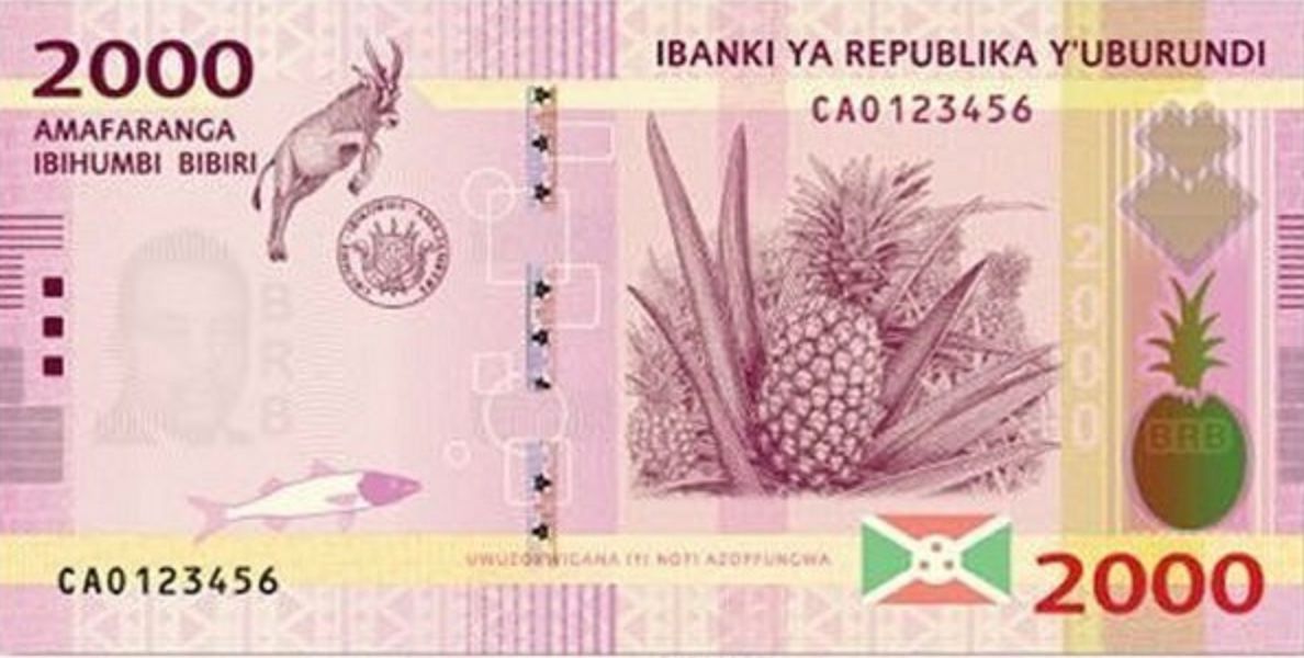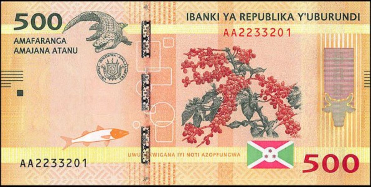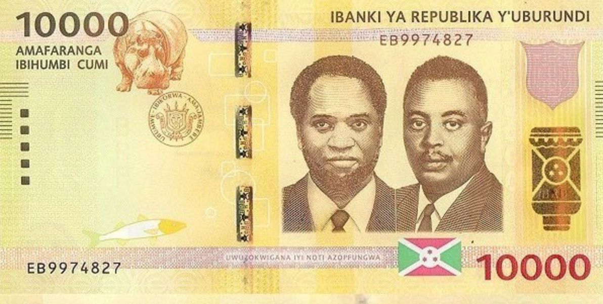 Voici la liste et le visuel des principaux billets (100 BIF, 500 BIF, 1000 BIF, 2000 BIF, 5000 BIF, 10000 BIF) en Franc du Burundi actuellement en circulation à Bujumbura au Burundi.