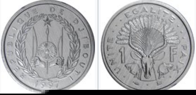 Voici la liste et le visuel des principaux billets (1000 DJF, 2000 DJF, 5000 DJF, 10000 DJF) et pièces (1 DJF, 2 DJF, 5 DJF, 10 DJF, 20 DJF, 50 DJF, 100 DJF, 250 DJF, 500 DJF) en Franc de Djibouti actuellement en circulation à Djibouti.