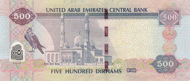 Voici la liste et le visuel des principaux billets (5 AED, 10 AED, 20 AED, 50 AED, 100 AED, 200 AED, 500 AED, 1000 AED) et pièces (0.05 AED, 0.1 AED, 0.25 AED, 0.5 AED, 1 AED) en Dirham des Emirats arabes unis actuellement en circulation aux Émirats arabes unis.