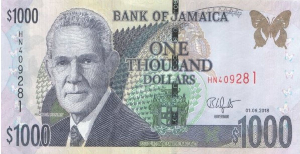 Voici la liste et le visuel des principaux billets (50$, 100$, 500$, 1000$) et pièces (1$, 5$, 10$, 20$) en Dollar jamaïcain actuellement en circulation en Jamaïque.