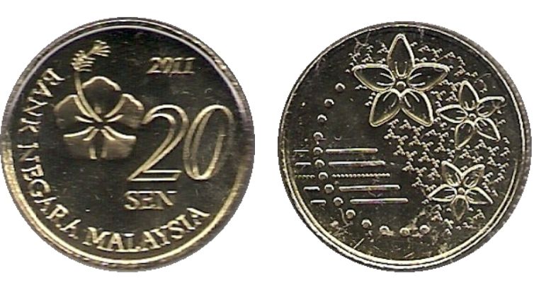 Voici la liste et le visuel des principaux billets (1 MYR, 5 MYR, 10 MYR, 20 MYR, 50 MYR, 100 MYR) et pièces (0.05 MYR, 0.1 MYR, 0.2 MYR, 0.5 MYR) en Ringgit actuellement en circulation à Kuala Lumpur en Malaisie.