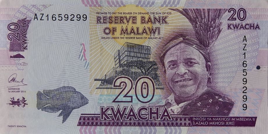 Voici la liste et le visuel des principaux billets (20 MWK, 50 MWK, 100 MWK, 200 MWK, 500 MWK, 1000 MWK, 2000 MWK) et pièces (1 MWK, 5 MWK, 10 MWK) en Kwacha du Malawi actuellement en circulation à Lilongwe au Malawi.