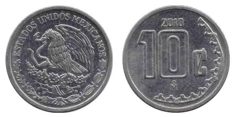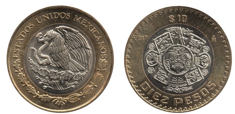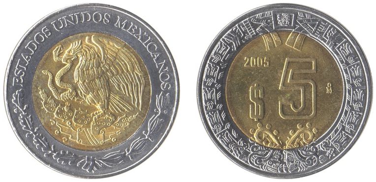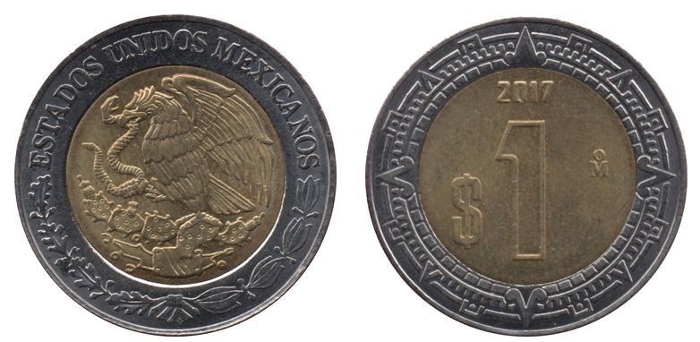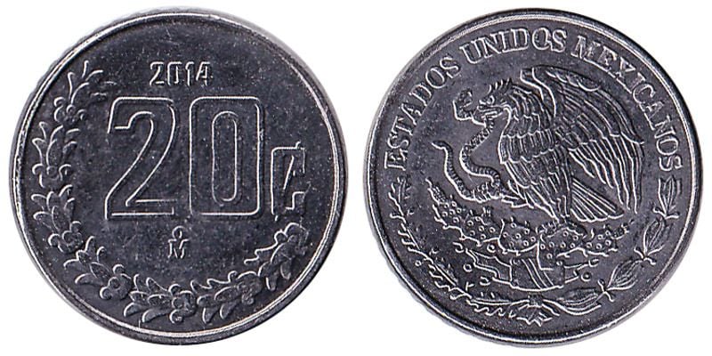 La monnaie souveraine du Mexique est le peso mexicain, de code MXN selon l'ISO 4217, et de symbole $ ; ainsi, pour le différencier du dollar, le symbole $Me est utilisé. Un peso est subdivisé en 100 centavos, de symbole ¢. Les billets en circulation au Mexique sont les billets de 20 $Me, 50 $Me, 100 $Me, 200 $Me, 500 $Me et 1 000 $Me. Les pièces en circulation sont les pièces de 10 ¢, 20 ¢, 50 ¢, de 1 $Me, 2 $Me, 5 $Me, 10 $Me.