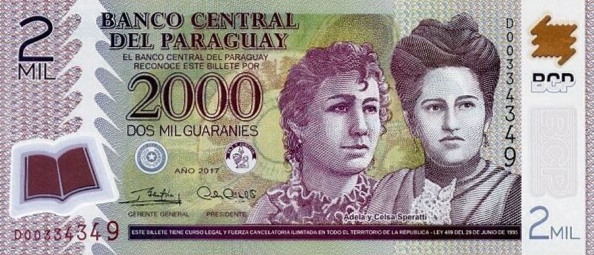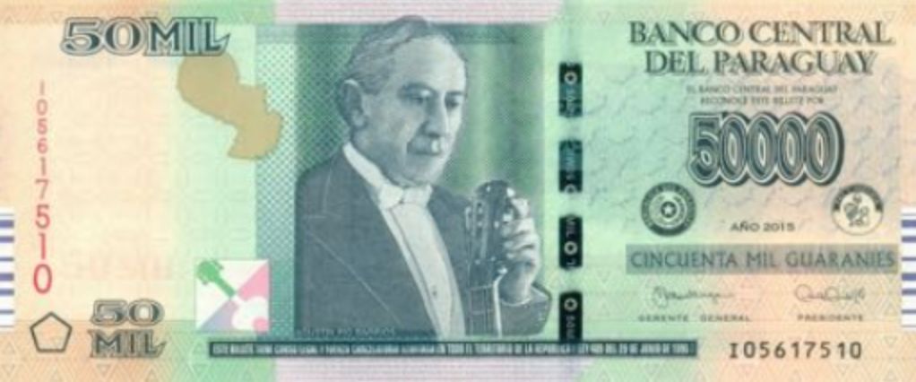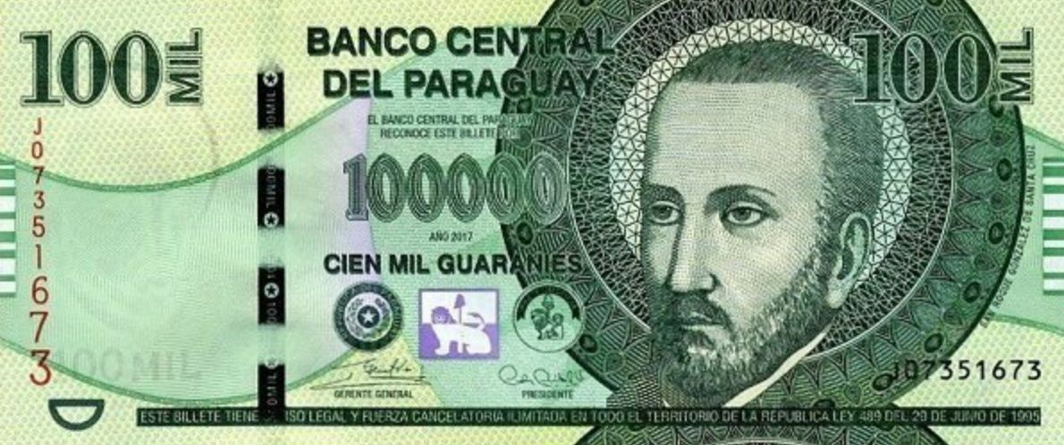 Voici la liste et le visuel des principaux billets (2000₲, 5000₲, 10000₲, 20000₲, 50000₲, 100000₲) et pièces (50₲, 100₲, 500₲, 1000₲) en Guarani actuellement en circulation au Paraguay.