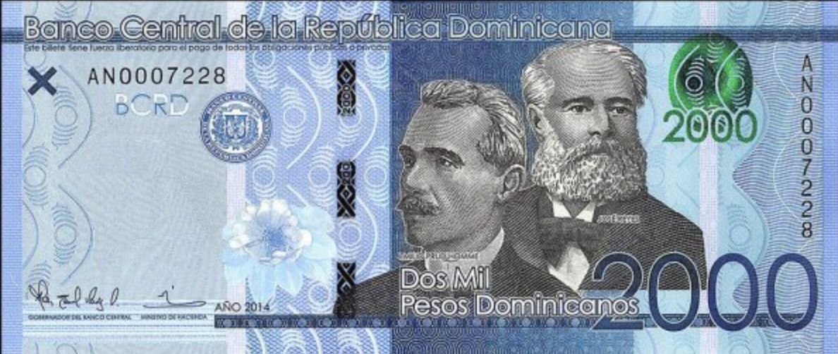 Voici la liste et le visuel des principaux billets (50RD$ , 100RD$ , 200RD$ , 500RD$ , 1000RD$ , 2000RD$ ) et pièces (1RD$ , 5RD$ , 10RD$ , 25RD$ ) en peso dominicain actuellement en circulation en République Dominicaine.