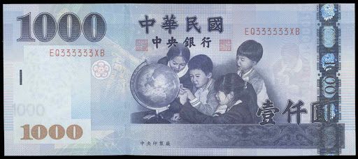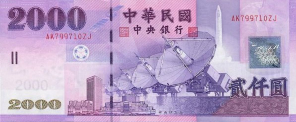 Voici la liste et le visuel des principaux billets (100NT$, 200NT$, 500NT$, 1000NT$, 2000NT$) et pièces (1NT$, 5NT$, 20NT$, 50NT$) en Nouveau dollar de Taïwan actuellement en circulation à Taipei à Taïwan.