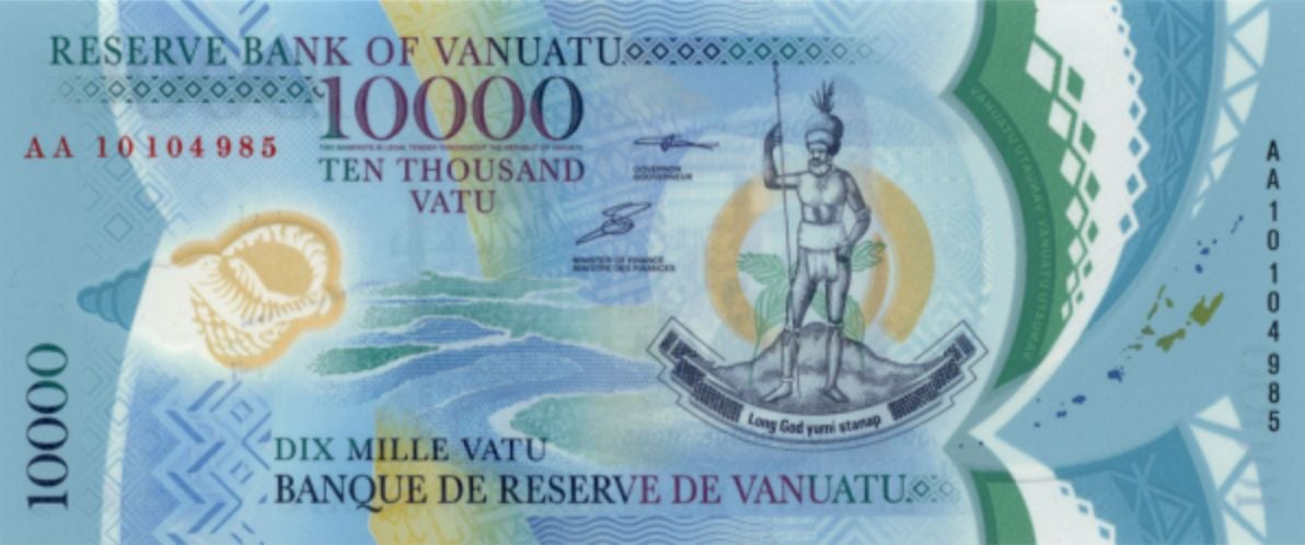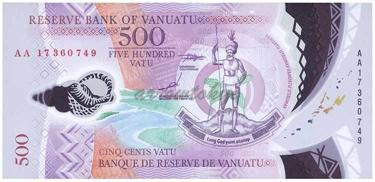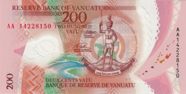 Voici la liste et le visuel des principaux billets (200 VUV, 500 VUV, 1000 VUV, 2000 VUV, 5000 VUV, 10000 VUV) et pièces (1 VUV, 2 VUV, 5 VUV, 10 VUV, 20 VUV, 50 VUV, 100 VUV) en Vatu actuellement en circulation à Port-Vila au Vanuatu.