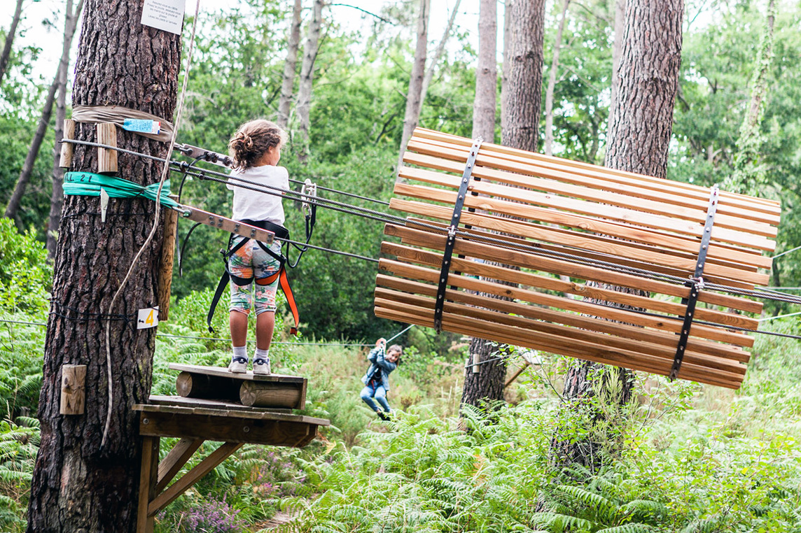 Même avec des étendues immenses de sable fin à ses pieds, on peut avoir envie de prendre de la hauteur. C'est l'expérience que permet le parc accrobranche de Bassin Aventures. Entre tonneaux, filets, tyroliennes, balancelles et ponts de cordes, chacun, dès 3 ans, relève le défi à son niveau et en s'amusant.