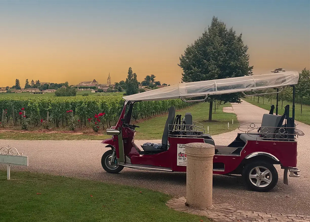 Des TukTuk électriques en plein cœur des vignes de Saint-Émilion ? Oui, oui ! C'est possible ! C'est donc parti pour une visite insolite en Gironde, à bord de ces engins aussi exotiques que modernes. Visite de la cité médiévale ou des vignobles, avec ou sans dégustation, vous avez le choix !