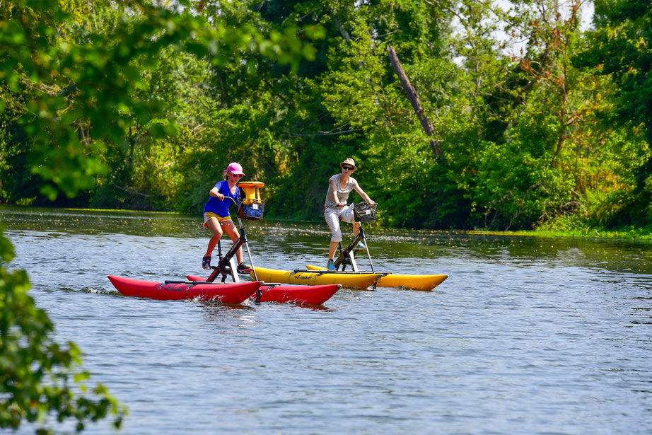 Vél'eau ou waterbike ? C'est pareil ! Près du Moulin de Porchères, venez tester cette activité insolite en Gironde. Vous voguez sur la rivière en pédalant sur un vélo. Malgré sa hauteur, les waterbike sont parfaitement stables. Impossible de tomber à l'eau ! Et parce que l'expérience est forcément plus fun à plusieurs, n'hésitez pas à venir en famille ou en tribu.