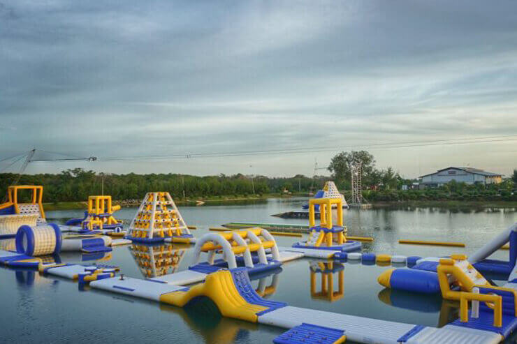 En plus d'un parc aquatique gonflable dans la mer, cette base de loisirs propose des activités originales adaptées à tous les âges. Les plus prisées sont le ski et le surf nautique (wakeboard), avec des équipements adaptés même aux plus jeunes.