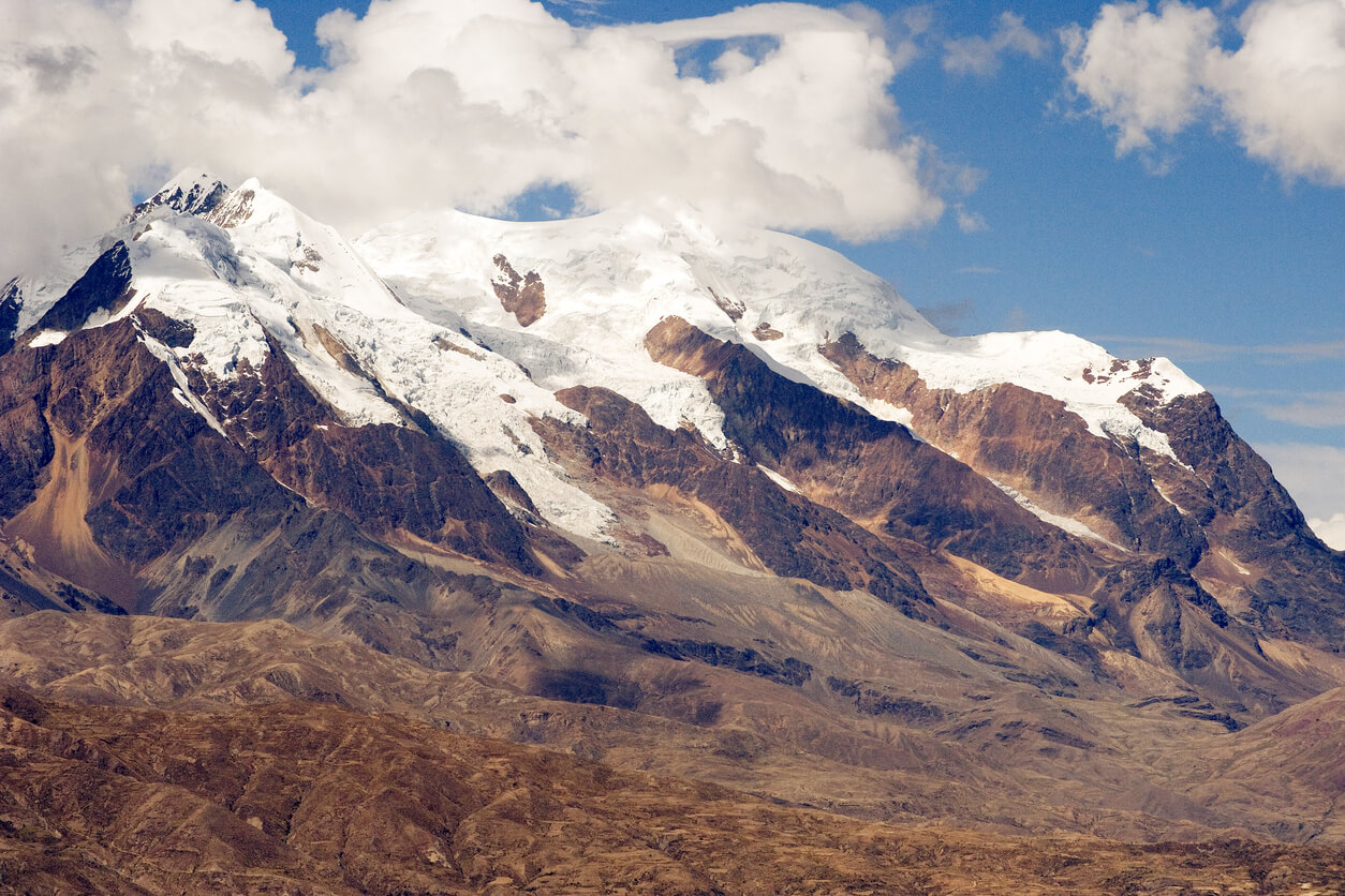 Le Nevado Illimani se trouve à environ 80 km de La Paz. Il est l'un des plus hauts sommets à visiter en Bolivie (6 462 mètres d'altitude). Les peuples autochtones le considèrent comme une véritable divinité. Et ses strates rocheuses renferment d'importantes ressources en minéraux !