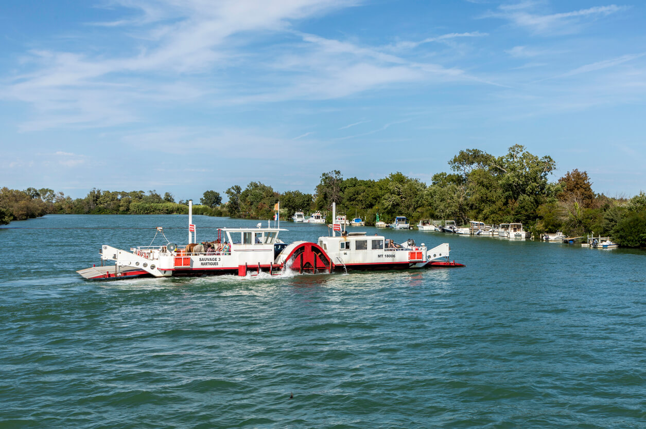 Lorsque vous visitez la Camargue, traverser le Petit-Rhône est difficile, car les ponts sont inexistants dans la partie la plus sauvage du territoire. Seule possibilité : emprunter le bac du Sauvage, fixé le long d'un câble propulsé par 2 roues à aubes latérales. Une expérience insolite en Camargue où les chevaux traversent le fleuve de la même manière que les voitures !