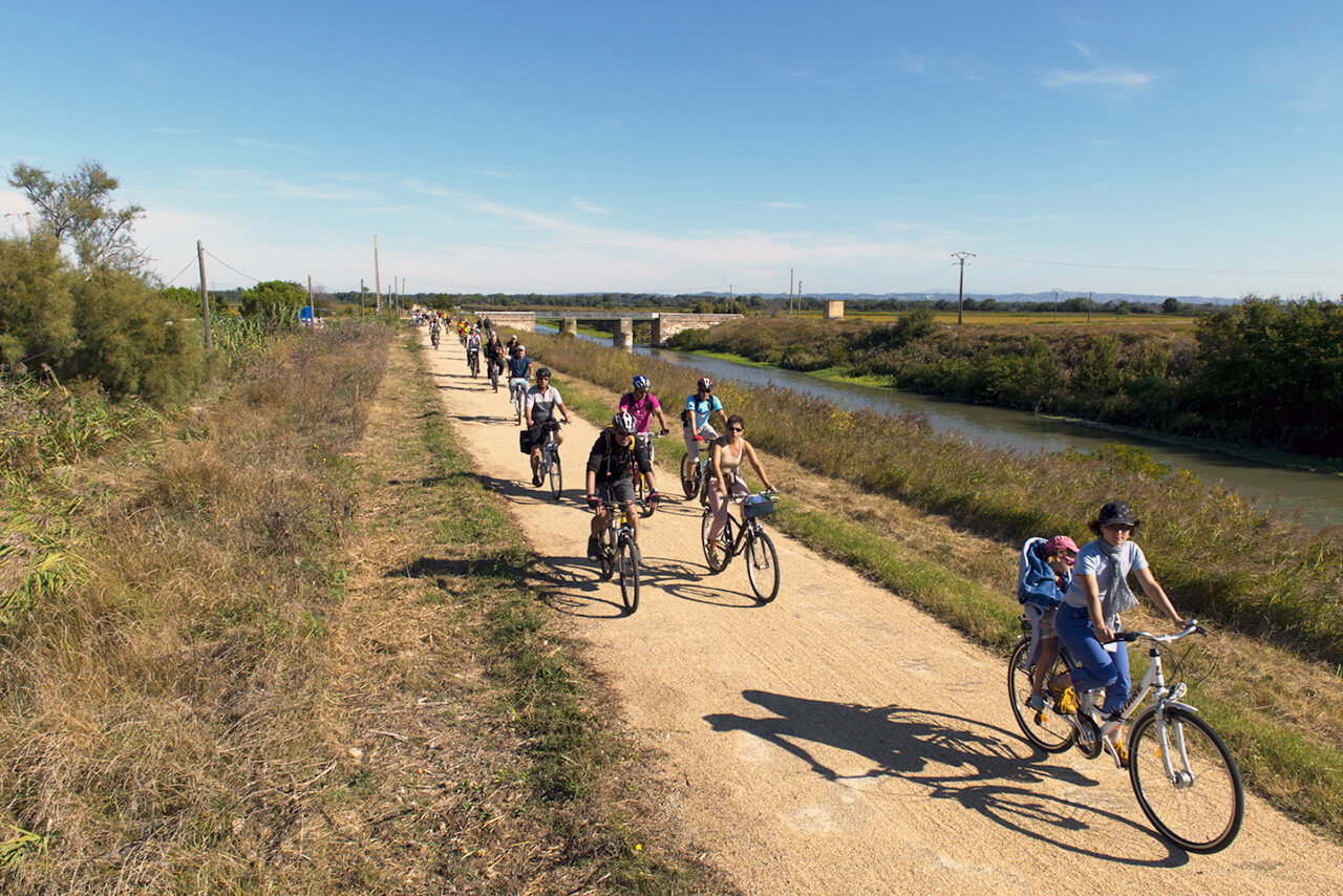 La ViaRhôna est un itinéraire à vélo qui part de Suisse pour s'achever à l'embouchure du Rhône. Pour agrémenter la fin de ces 815 km de parcours, vous pouvez faire des haltes entre Arles et Mas Thibert au fil de bulles sonores (à télécharger sur votre téléphone). Vous en apprenez ainsi beaucoup sur l'occupation humaine qui façonna les paysages du delta du Rhône au fil des siècles. Une manière insolite de faire du vélo en Camargue !