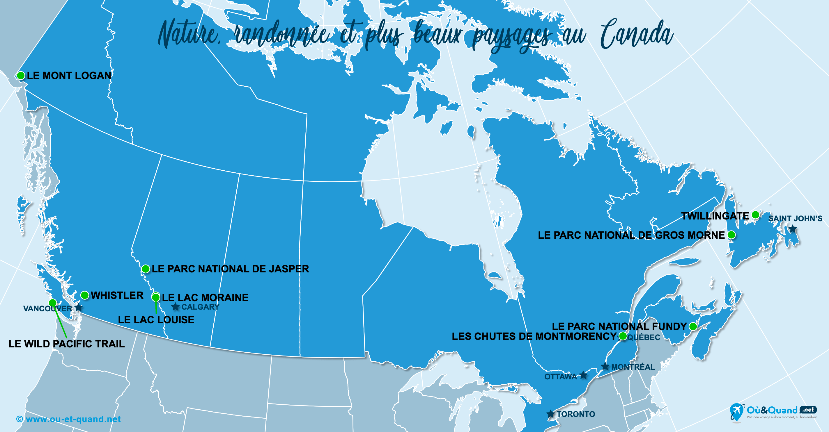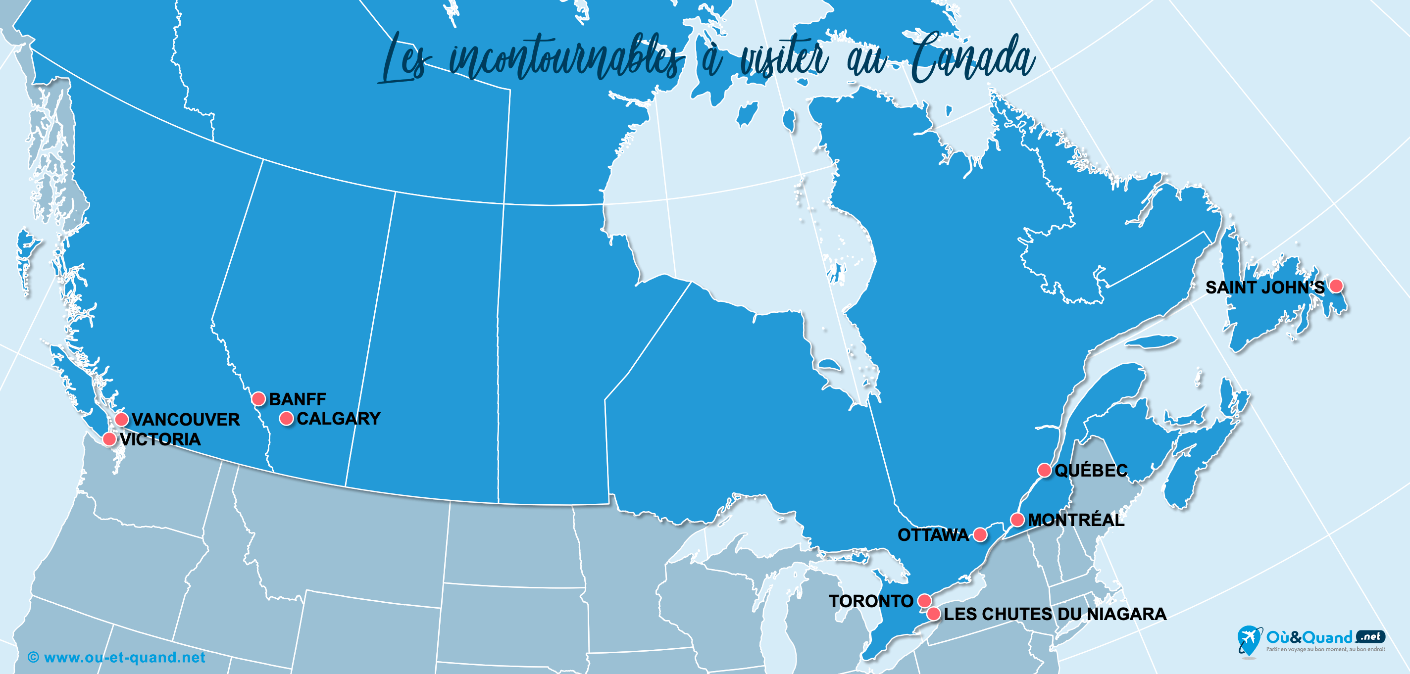 Visiter le Canada : Où aller et Que faire ? Les 46 lieux à voir et nos cartes touristiques