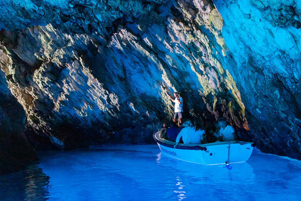 Sur l'île de Vis, vous pourrez assister à un spectacle naturel étonnant. En rejoignant la grotte bleue de Bisevo en barque, vous découvrirez une cavité rocheuse remplie d'une eau à la couleur magique. Cette nuance profonde de bleu est due à une source de lumière qui passe sous la grotte, et donne ces reflets magnifiques. Malheureusement, il est interdit de s'y baigner.