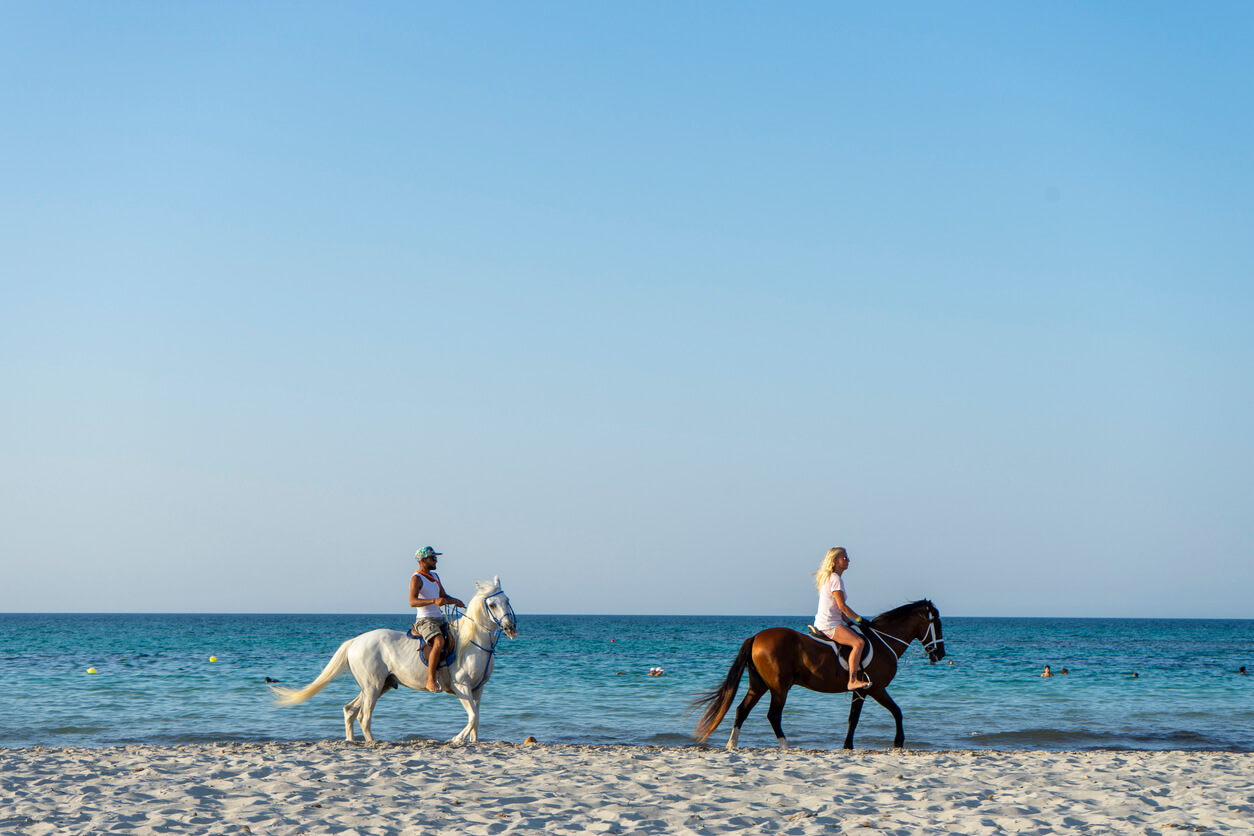 Partagez un moment inoubliable en famille à Djerba en vous baladant à cheval le long de la mer ! Le Ranch Adada Djerba se trouve dans la zone touristique d'Aghir. Vous admirerez de beaux paysages, des maisons typiques de Djerba, des oliviers, des cactus, des palmiers… Le must ? Le faire au coucher du soleil !