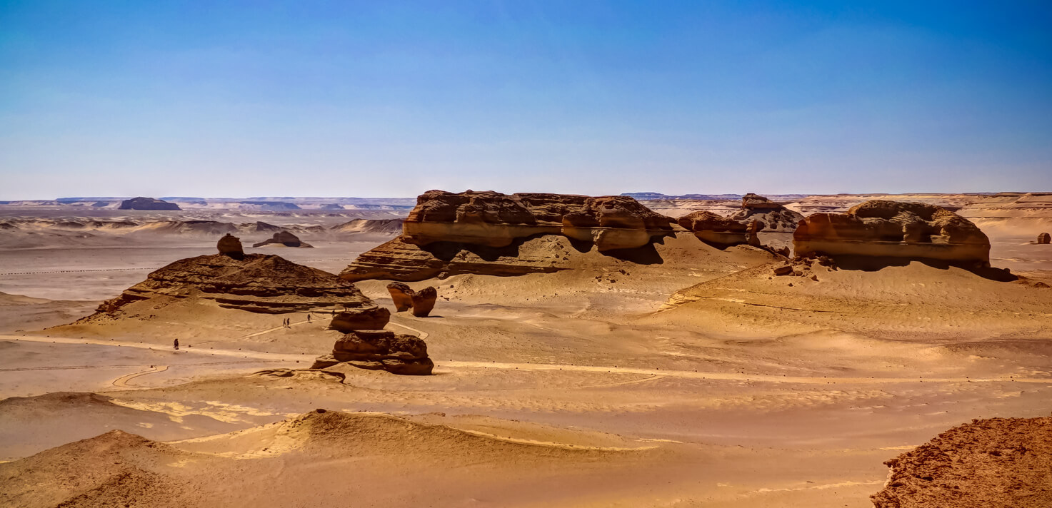 Fermez les yeux et imaginez un paysage aride parsemé de piliers rocheux d'un blanc impeccable, et de petites dunes qui ressemblent à des tas de neige. Ce panorama absolument incroyable est une des attractions naturelles les plus fascinantes du pays. N'hésitez pas à faire une excursion ici en passant par les oasis, et à dormir dans le désert.