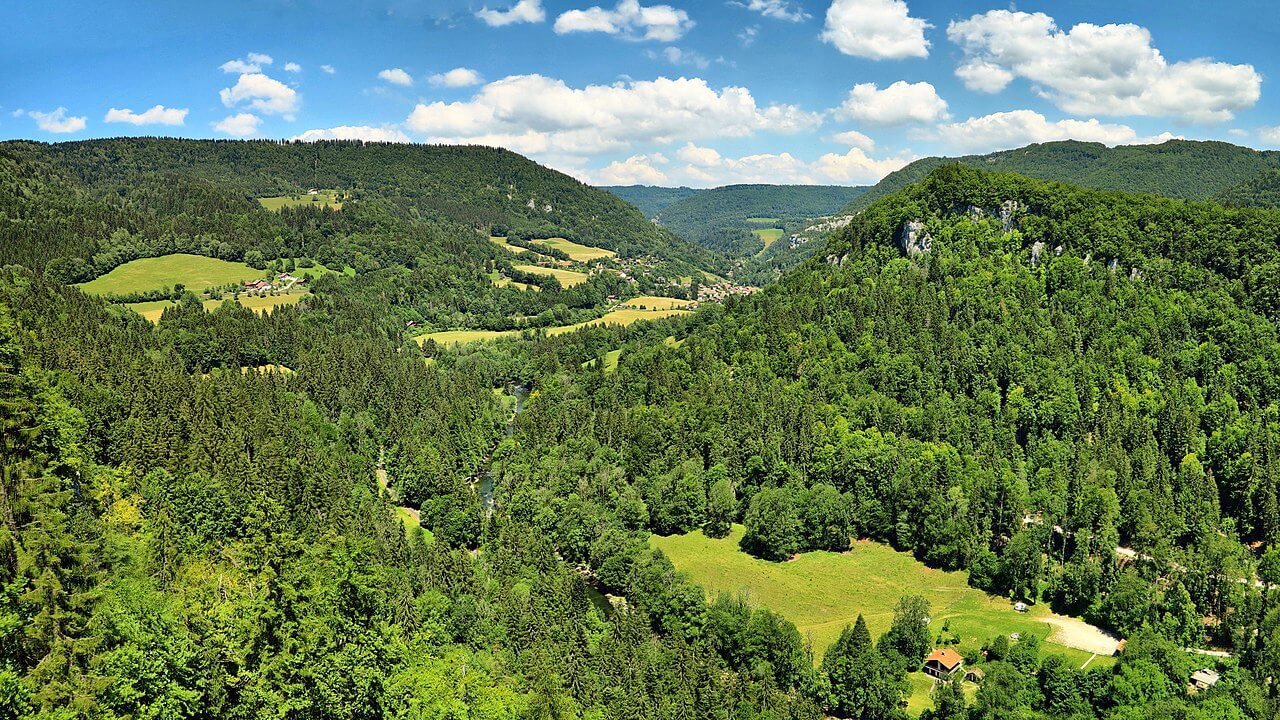 Une fois de plus, c'est le vert des forêts et les eaux cristallines des rivières que l'on retrouve le plus dans le tout jeune Parc naturel régional du Doubs Horloger. Créé en 2021, il s'étend le long de la frontière suisse sur 94 communes. Dans ses paysages à arpenter à pied, à cheval, à vélo ou en canoë, la vache montbéliarde et le cheval comtois sont à l'honneur, ainsi que toute la gastronomie locale, telle que le Comté ou la saucisse de Morteau.