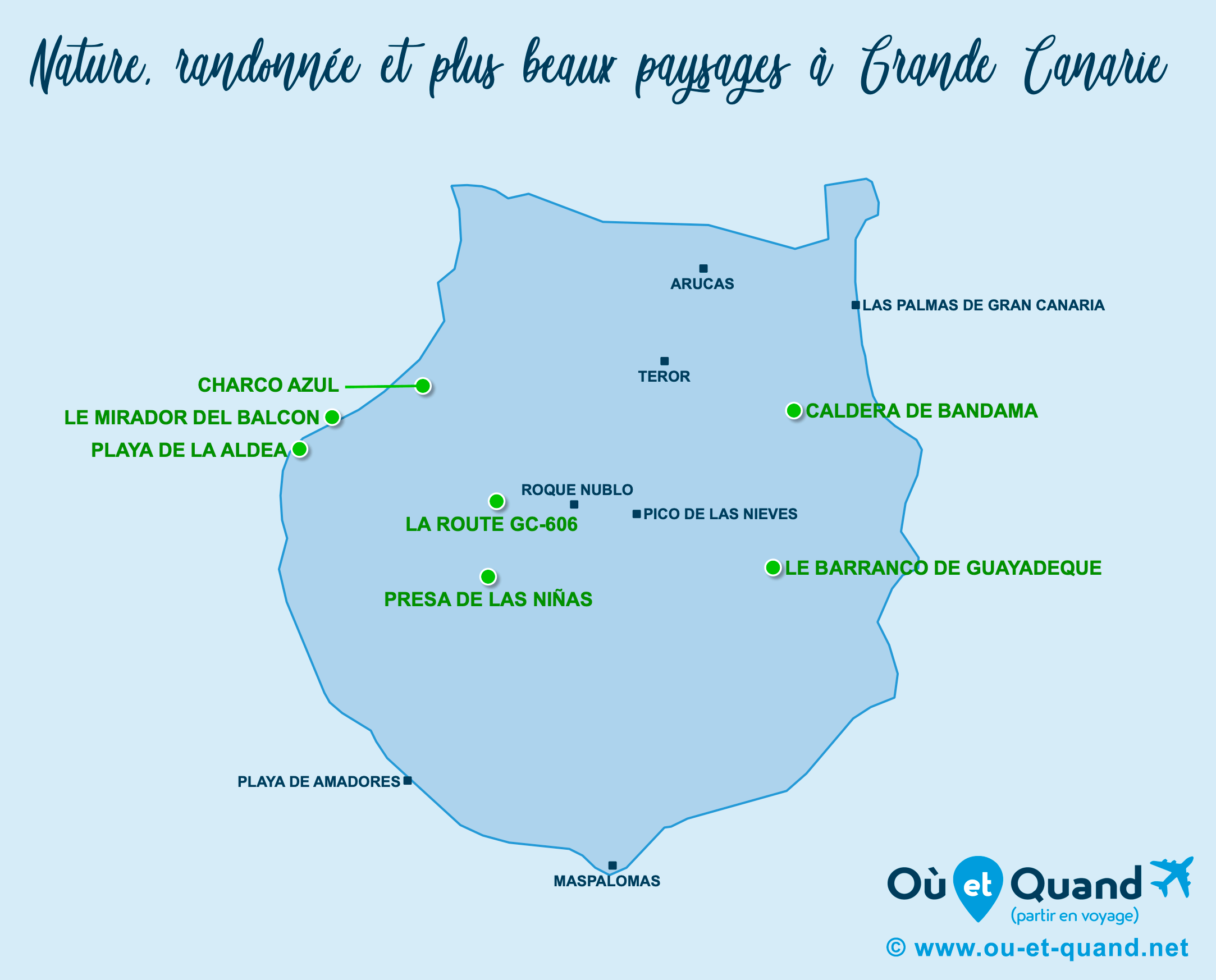 Téléchargez les 6 cartes touristiquesLieux et sites naturels incontournables à Grande Canarie
