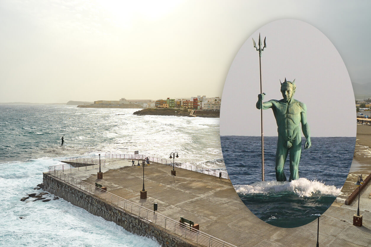 Au large de la plage de Melenara, à l'est de l'île, vous découvrirez une grande sculpture sortant des eaux. Il s'agit de la statue de Neptune, le dieu des eaux vives et des sources dans la mythologie romaine. Cette statue de bronze mesure environ 4 mètres de haut !
