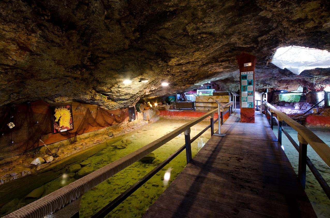 Ce petit aquarium est en réalité une caverne rocheuse aménagée. On y trouve des espèces marines que l'on rencontre dans les eaux de la Méditerranée. Vous pourrez donc observer différents poissons, des mollusques, des étoiles de mer, et même des raies, dans un décor atypique.