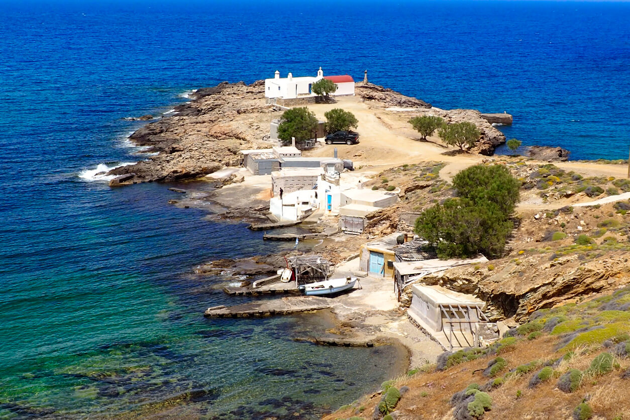 Non loin du sommet Profitis Elias, vous tomberez sur des mines de barytine abandonnées. La barytine est un minéral de haute qualité qu'on utilise comme lubrifiant dans le processus de forage pétrolier. Mykonos dispose de dépôts de barytine et fut ainsi exploitée ces dernières années. Vous découvrirez ici un village abandonné, isolé des attraits principaux de l'île. Privilégiez le quad pour vous y rendre !