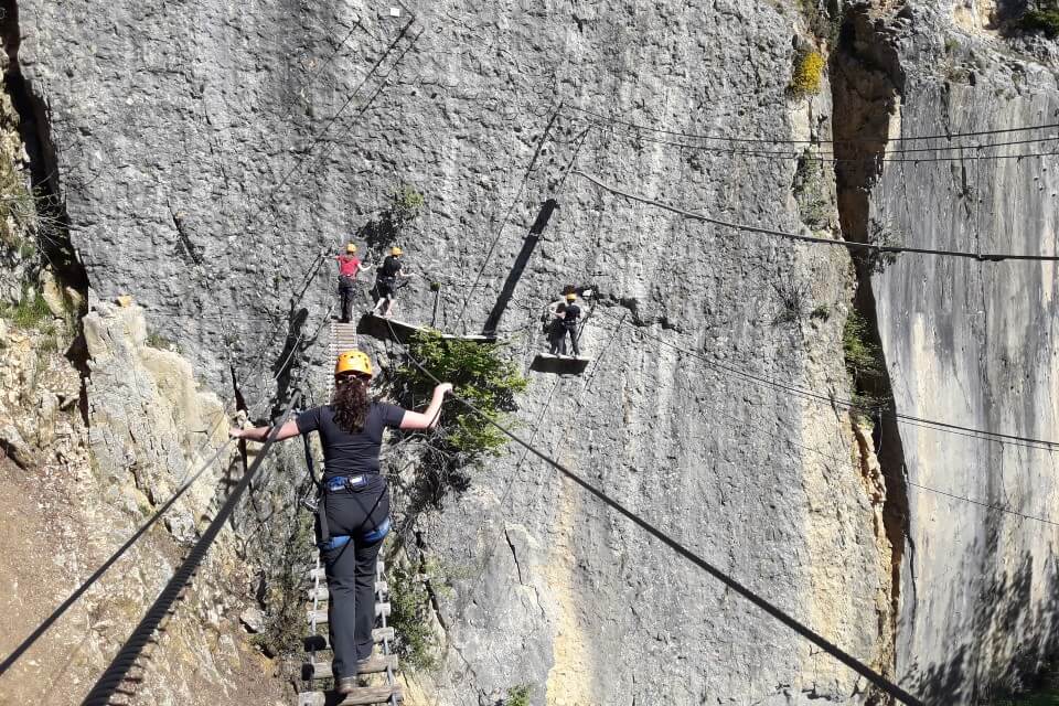 C'est dans un cadre somptueux au-dessus du lac de Vouglans que les sportifs les plus intrépides se lancent à l'assaut de la via ferrata du Regardoir. Ce parcours de 350 m de long, accessible aux enfants dès 1,25 m, présente plusieurs niveaux de difficulté. Rien de tel que de se surpasser en profitant d'un paysage grandiose, grâce notamment à une passerelle de 90 m de long au-dessus des eaux turquoise du lac !