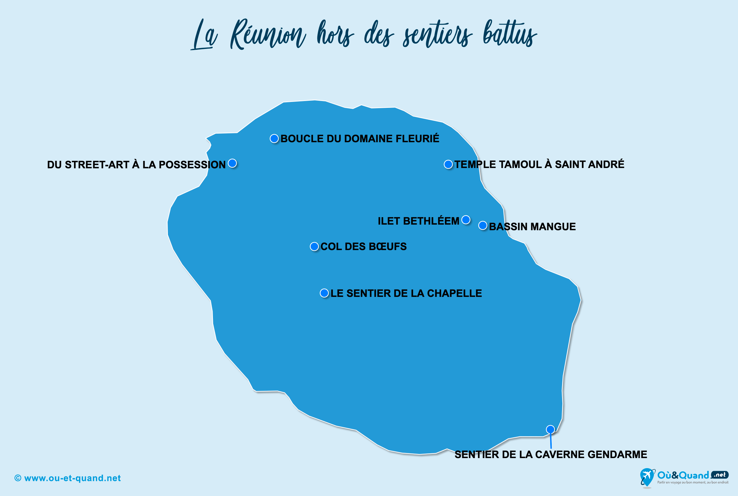 La carte touristique des lieux à visiter à la Réunion