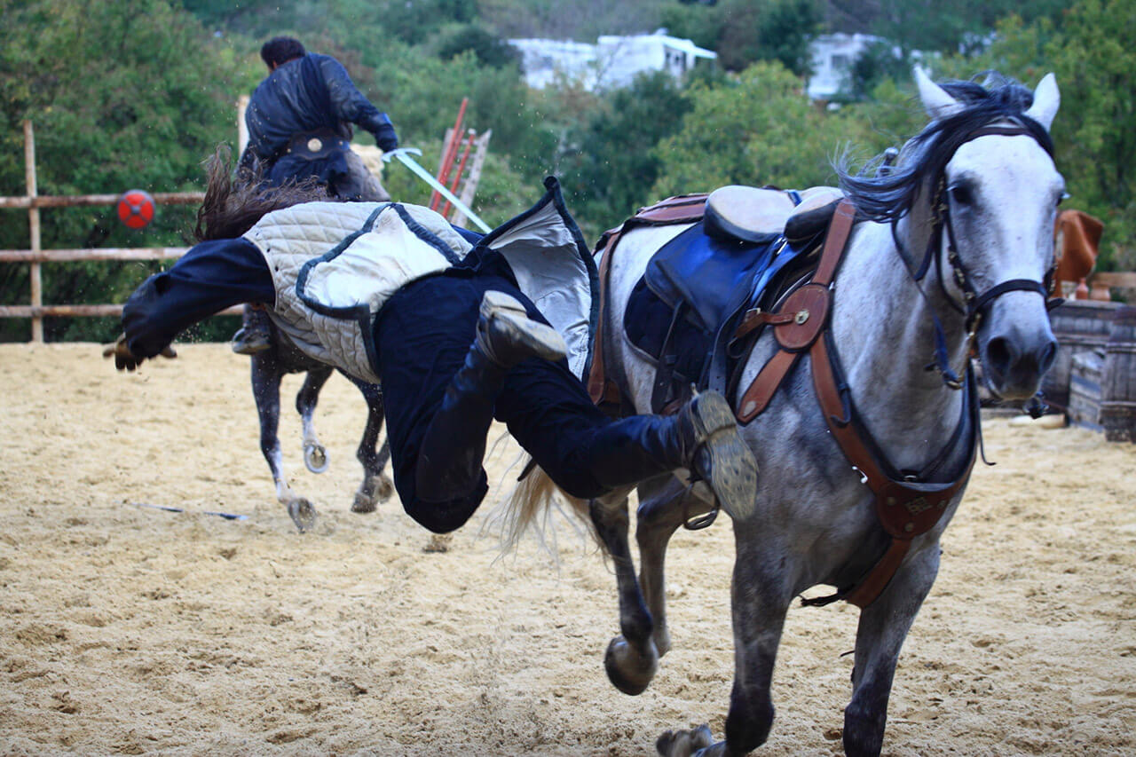 Rocamadour est le théâtre d'un véritable spectacle qui vous plonge au temps des chevaliers avec humour et dérision. Tous les étés, une troupe d'acteurs prend place dans le Parc Durandal pour un spectacle équestre qui mêle voltige, dressage, espiègleries et franche rigolade.