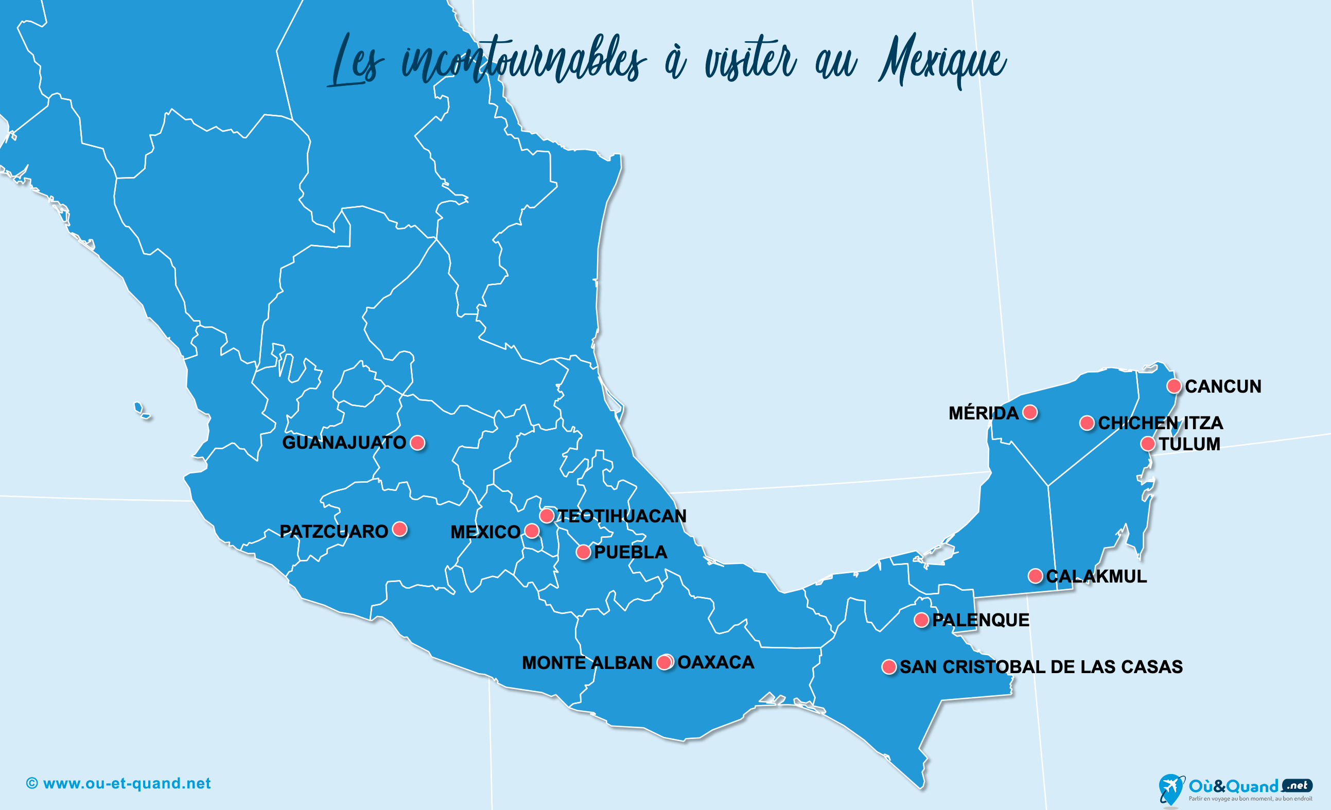 La carte touristique des lieux à visiter au Mexique