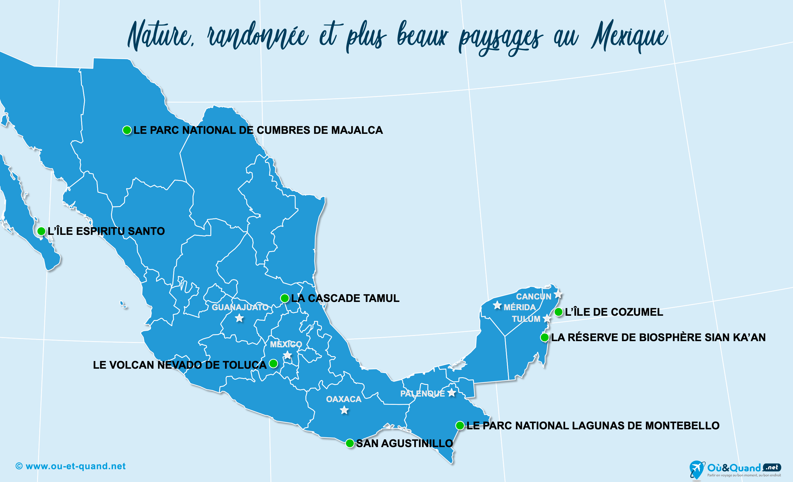 Téléchargez les 6 cartes touristiquesLieux et sites naturels incontournables au Mexique