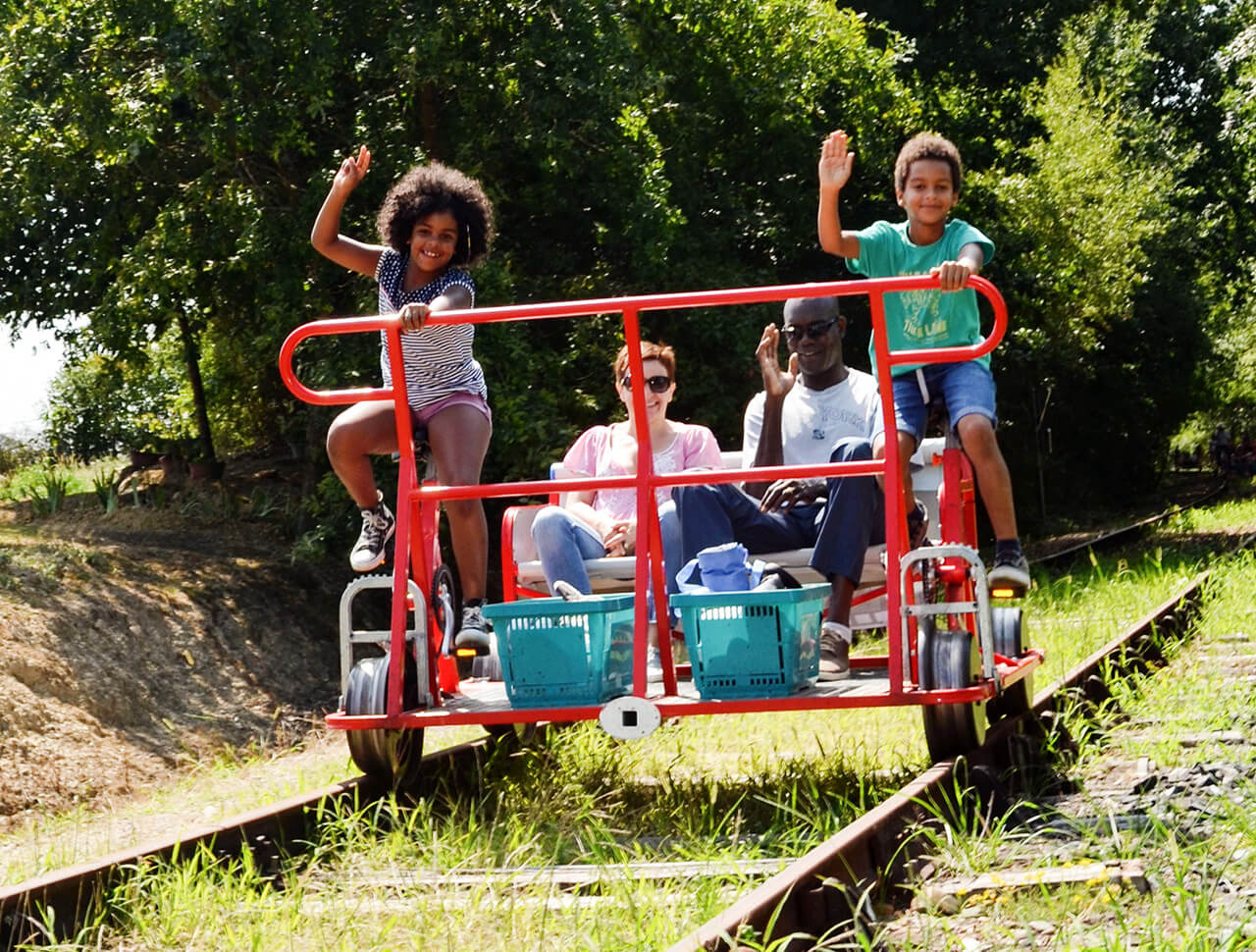 En pédalant sur le vélorail de l'ancienne voie ferrée qui relie Nogaro à Sorbets, vous profitez d'une découverte ludique en famille dans la campagne gersoise. Durant 2 h, les petits et les grands passent un moment de détente en s'amusant et en profitant du grand air. Si vous craignez de ne pas être assez sportif, aucune inquiétude : le vélorail est équipé d'une assistance électrique.