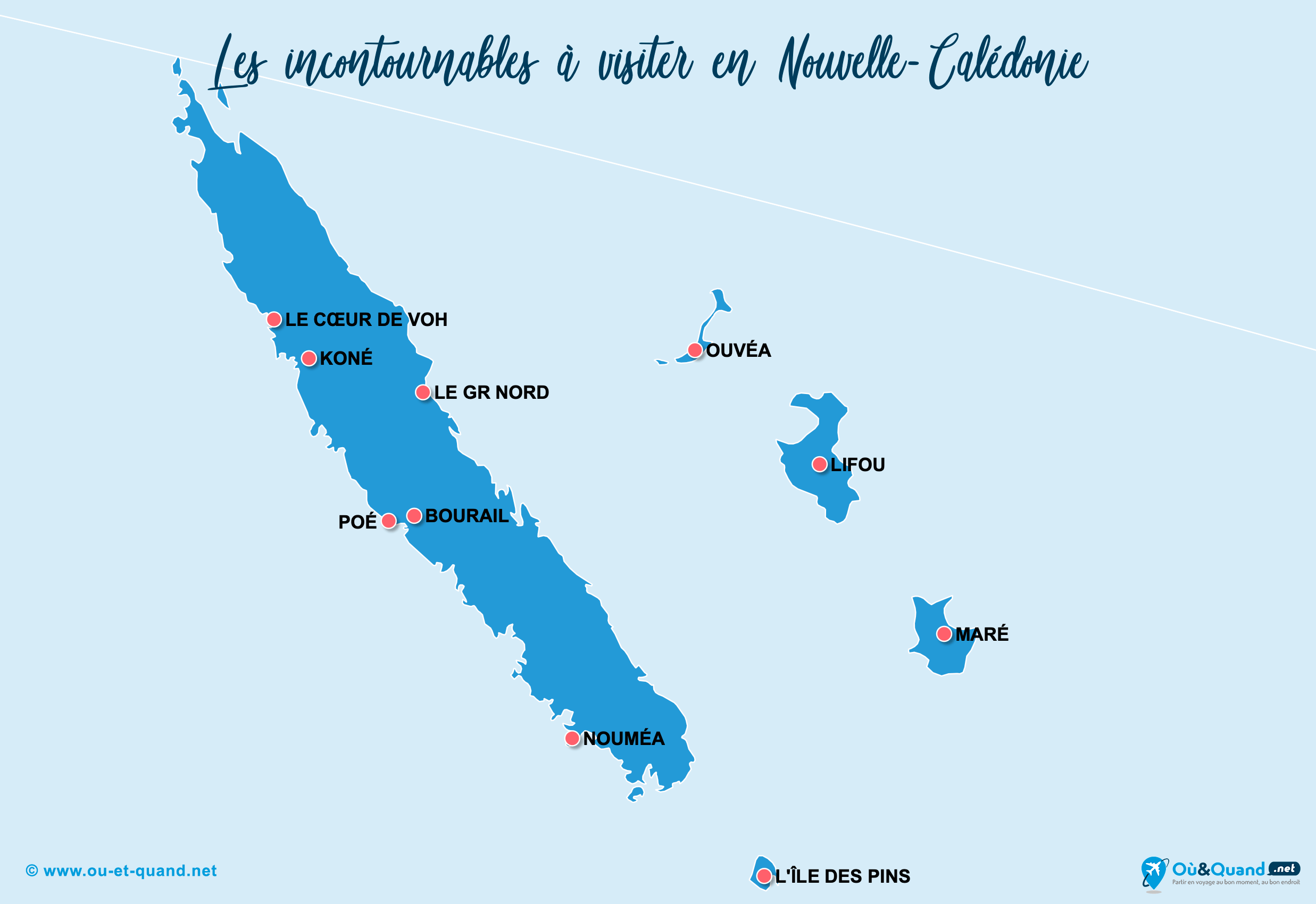 Visiter la Nouvelle-Calédonie : Que faire et Que voir ? Les 42 endroits incontournables et nos cartes touristiques