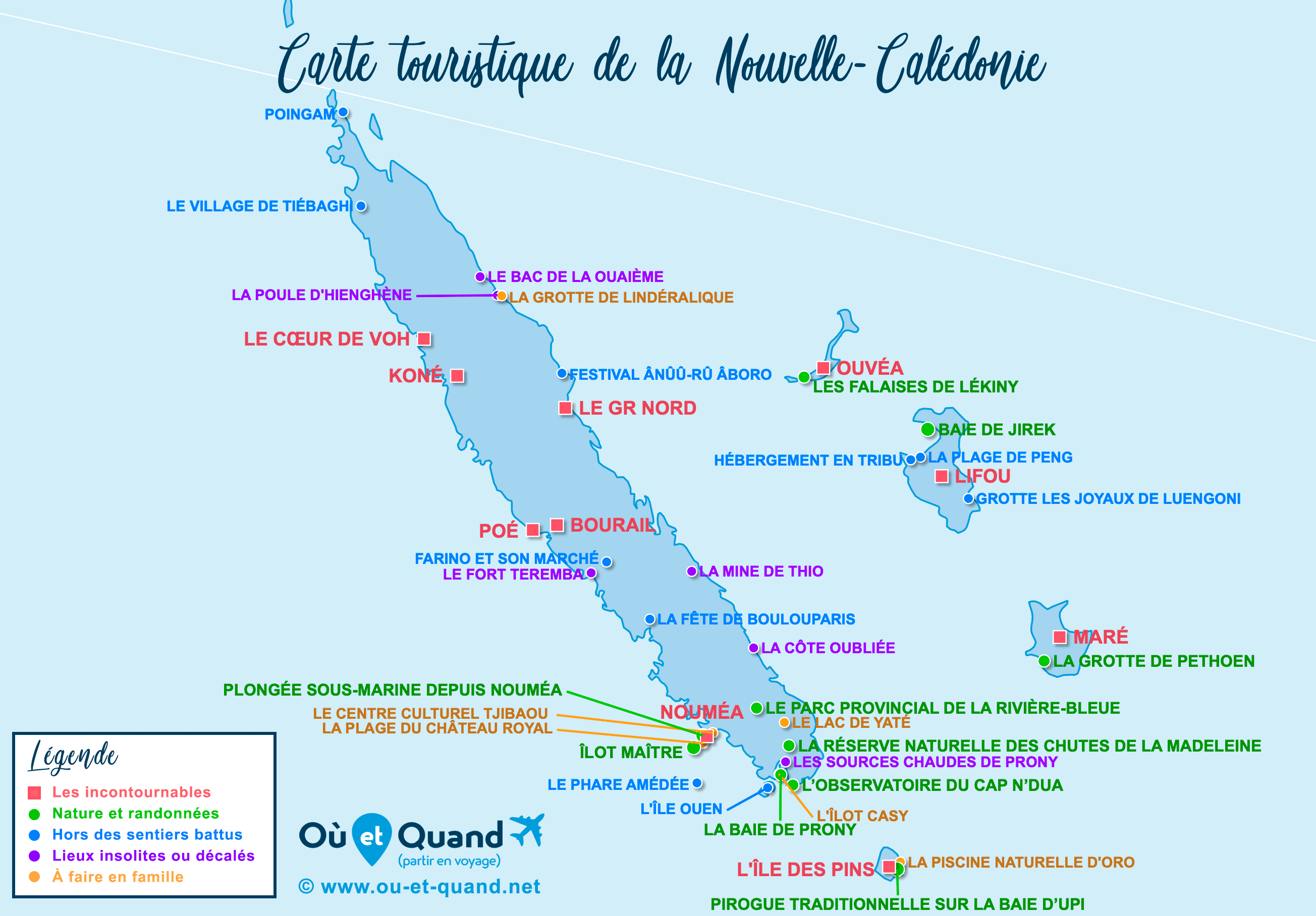 La carte touristique des lieux à visiter en Nouvelle-Calédonie