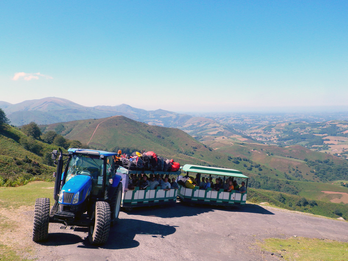 Un petit train tiré par un tracteur ! C'est le moyen de locomotion que vous pouvez emprunter en famille dans le Pays basque pour accéder au mont Baigura à près de 900 m d'altitude. C'est une superbe excursion en pleine nature qui plaît à toutes les générations !